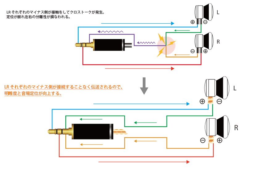 従来モデルのINSPIREシリーズで採用した3種混合の独自導体は、材質・太さ・本数を独自に組み合わせることで、8芯構成ながら優れた解像度と立体的な音場空間を実現しました。