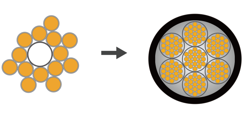 1芯あたり0.06mmの超極細高純度無酸素銅を133本使用することで、 導体抵抗値を抑え、電気伝導性が向上。自然で躍動感ある中低域を実現します。 さらに、錫メッキ加工を施すことで、音に豊かな響きと厚みを与え、 鮮やかで伸びのある高域と重厚でレスポンスに優れた濃密サウンドを実現します。 導体を真円化することで導体自体の柔軟性と耐久性が飛躍的に向上。 折り曲げや急激な温度変化にさらされても安定した信号伝達の役割を果たします。